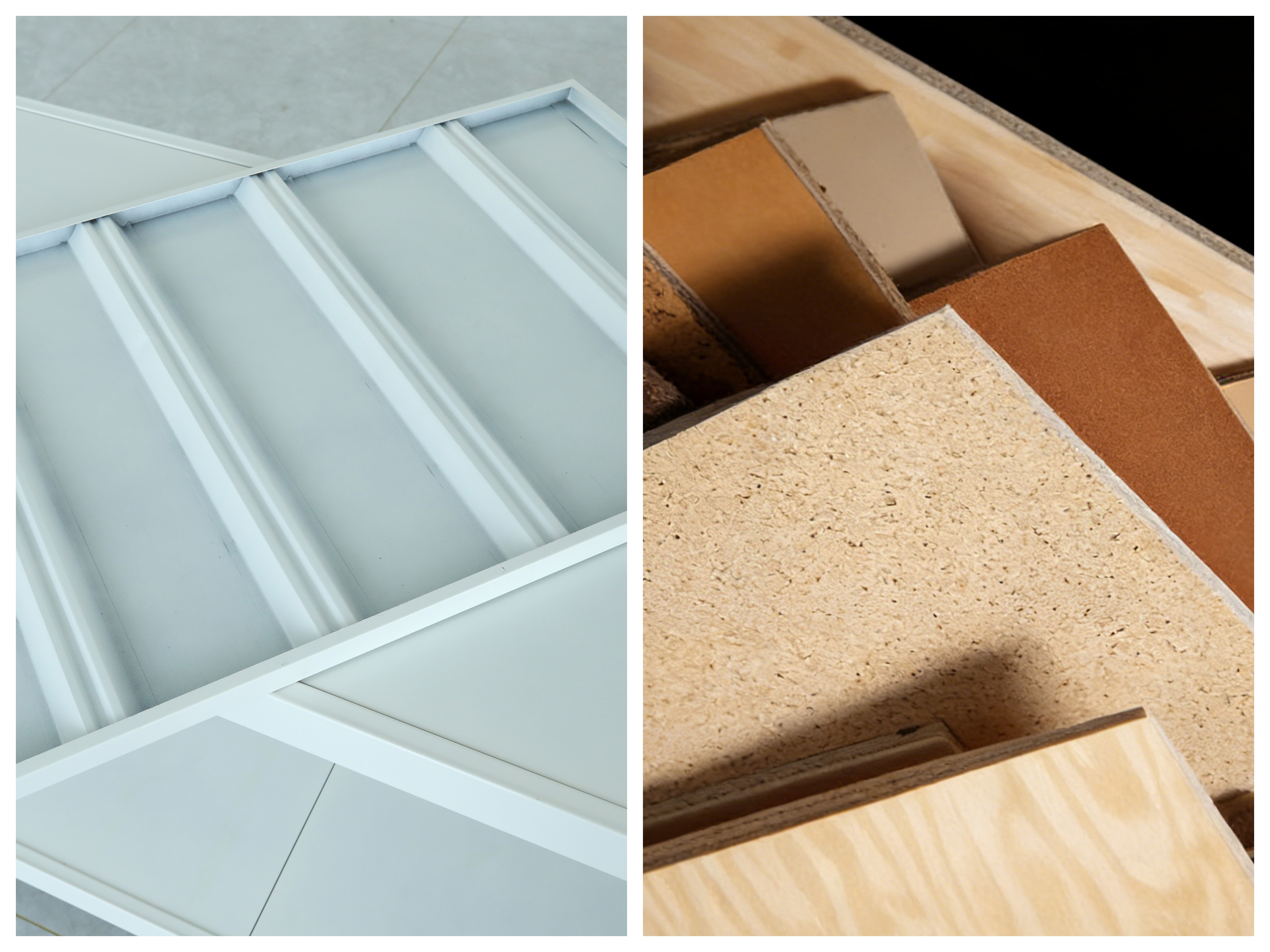 Particle board is an engineered wood product made from wood chips, sawdust, and a synthetic resin binder. It is compressed and extruded, making it a dense and cost-effective alternative to solid wood.