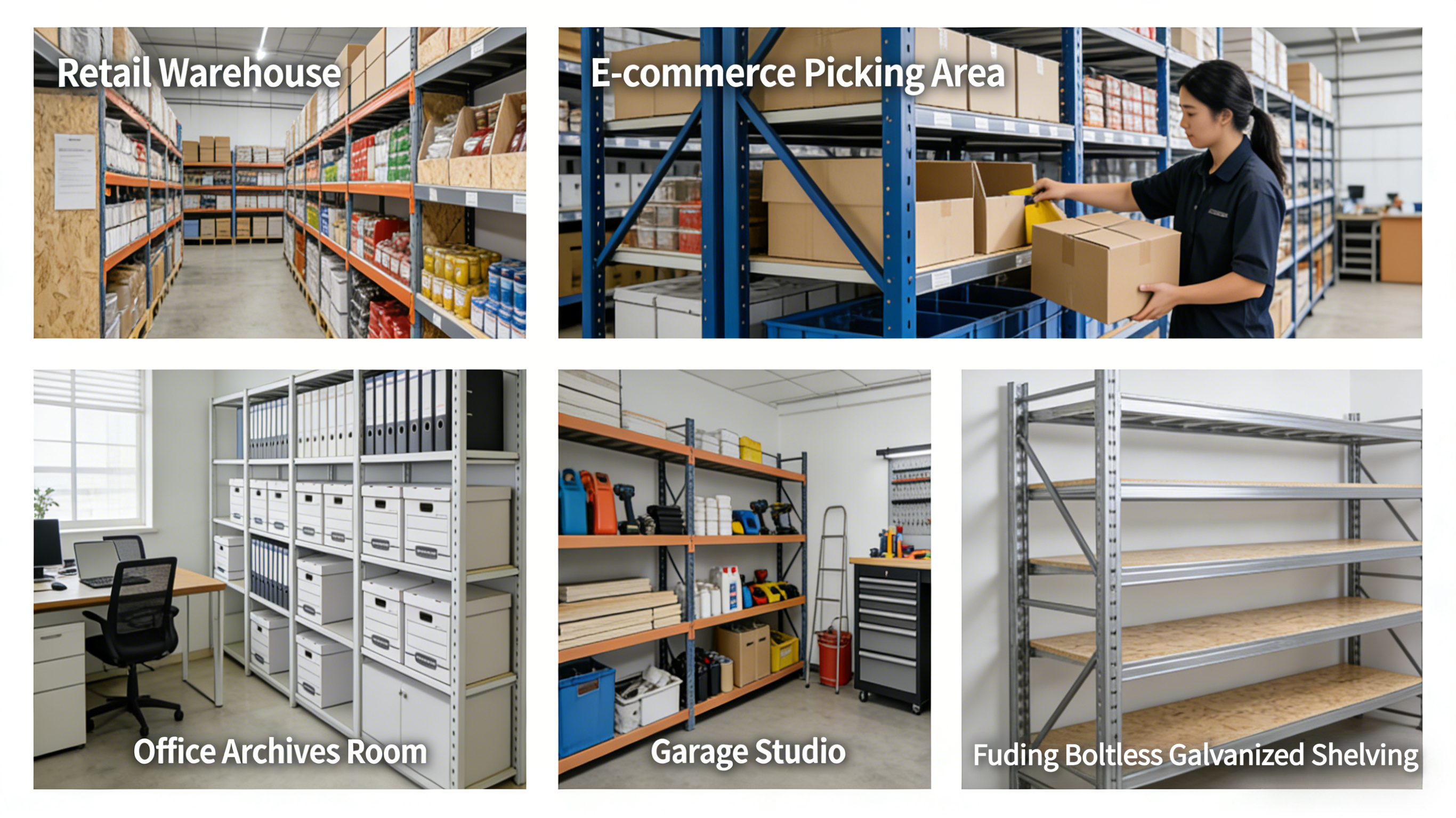 | Retail Stockroom | Storing backstock of apparel, electronics, goods | Easily adjustable for seasonal inventory changes. Cost-effective. |
